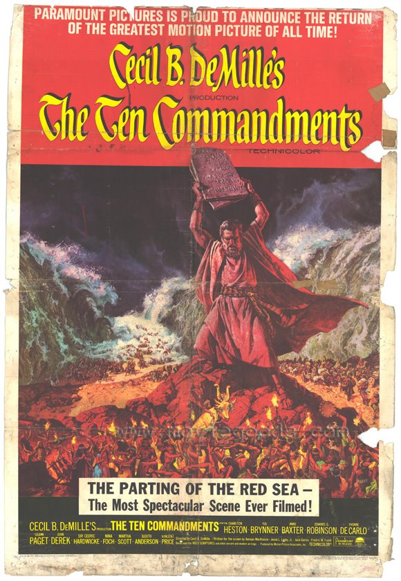 Cartaz original do filme "Os Dez Mandamentos" (1956) durante sua estadia de exibição no Amapá. Tal cartaz foi recentemente encontrado no depósito de um antigo cinema de Macapá.Antigamente, quando ainda não tinham trazido a TV para o Amapá, um dos principais entretenimentos que as crianças e os adolescentes adoravam estar envolvido eram com as sessões cinematográficas.
